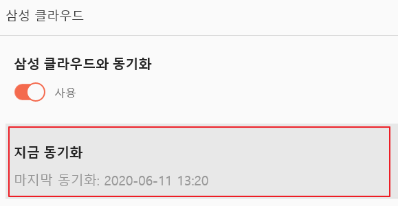 삼성 클라우드에 로그인을 하여 사용으로 변경을 합니다.
