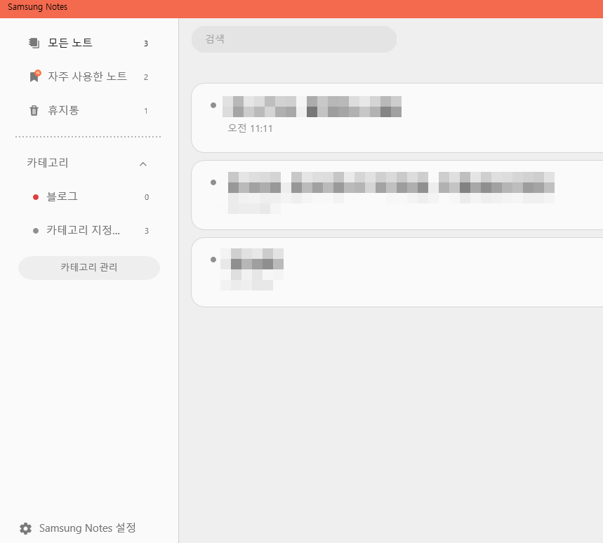 동기화가 되면 아래와 같이 PC에서도 휴대폰의 삼성 노트 내용이 보입니다.