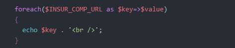 연관 배열은 Key, Value 이렇게 한 쌍으로 되어 있어서, foreach Loop를 이용해서 데이터를 조회합니다.