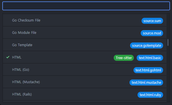 여기서 HTML로 되어 있는 부분을 선택하시면 아톰은 해당 파일을 HTML로 인식을 합니다.
