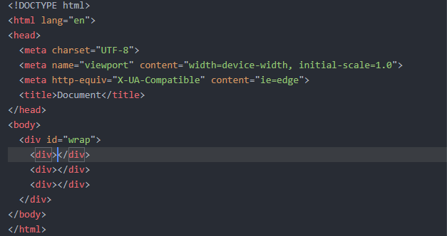 원하는 아이디가 들어간 경우 : #wrap>div*3 + TAB