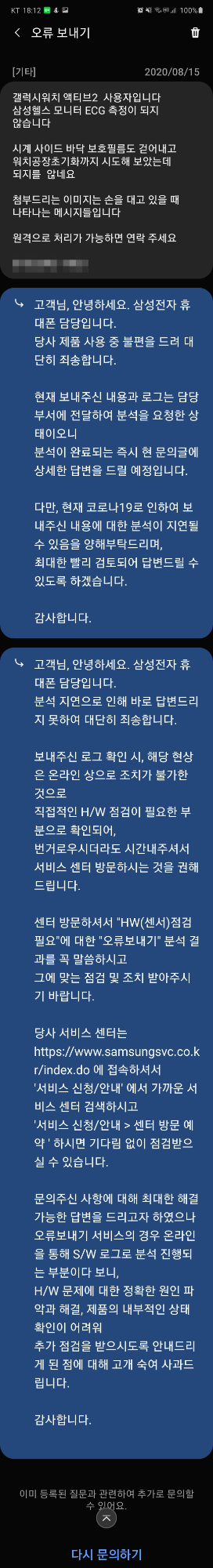 삼성 헬스 모니터 ECG 에러 문의에 대한 답변2