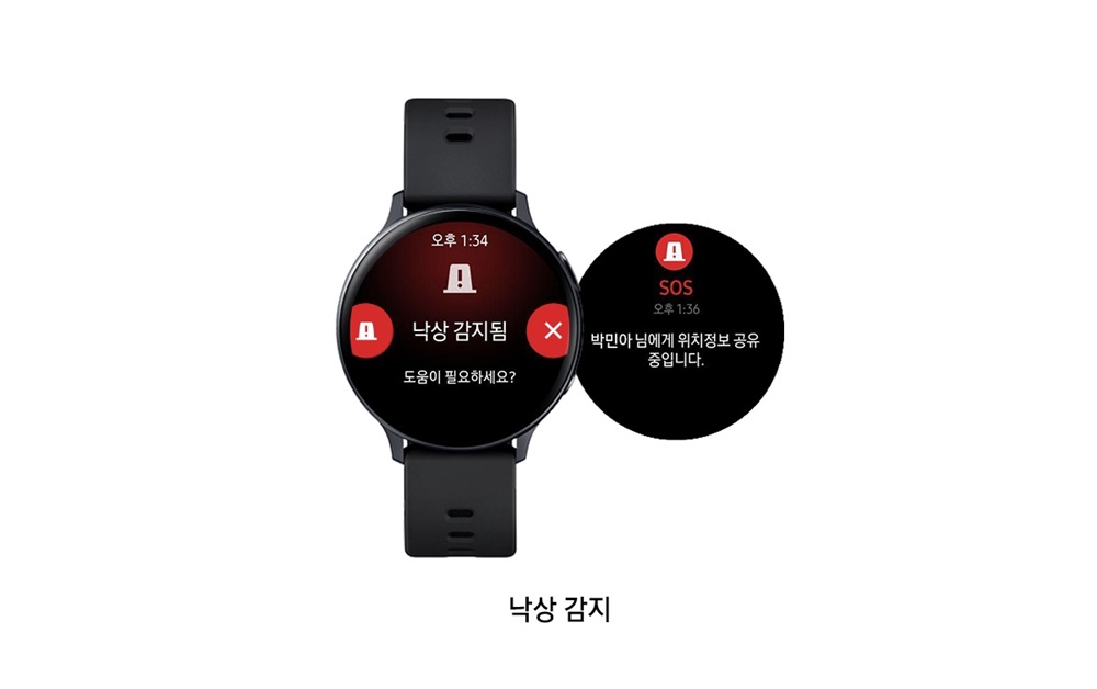 가족·친구 등 사랑하는 이와 멀리 떨어져 있을 때, 갤럭시 워치 액티브2를 통해 서로를 지켜줄 방법. 바로 ‘낙상 감지 기능’입니다. 사용자가 갑작스러운 사고로 넘어져 일어나지 못하고 있다는 것이 감지되면, SOS 알림을 통해 사전에 지정한 최대 4인에게 메시지가 전송되는 것인데요. 이를 통해 상황을 파악하고 사용자를 신속하게 구조할 수 있습니다.