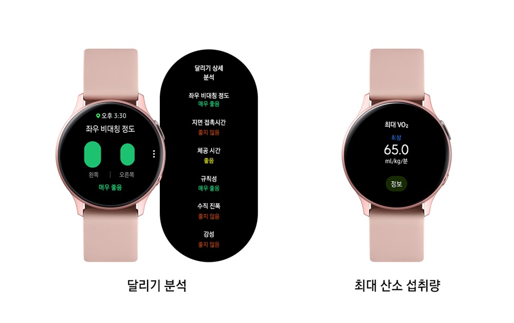 러닝을 즐기는 갤럭시 워치 액티브2 사용자들은 업그레이드를 통해 추가된 ‘달리기 분석 기능’으로 다양한 지표를 분석할 수 있습니다. 좌우 비대칭 정도부터 규칙성, 강성, 수직 진폭, 지면 접촉 시간 등 전문적인 항목을 상세히 제공하기 때문. 이를 통해 달리기 기록을 향상시키고, 자세를 개선해 부상을 방지할 수 있습니다.