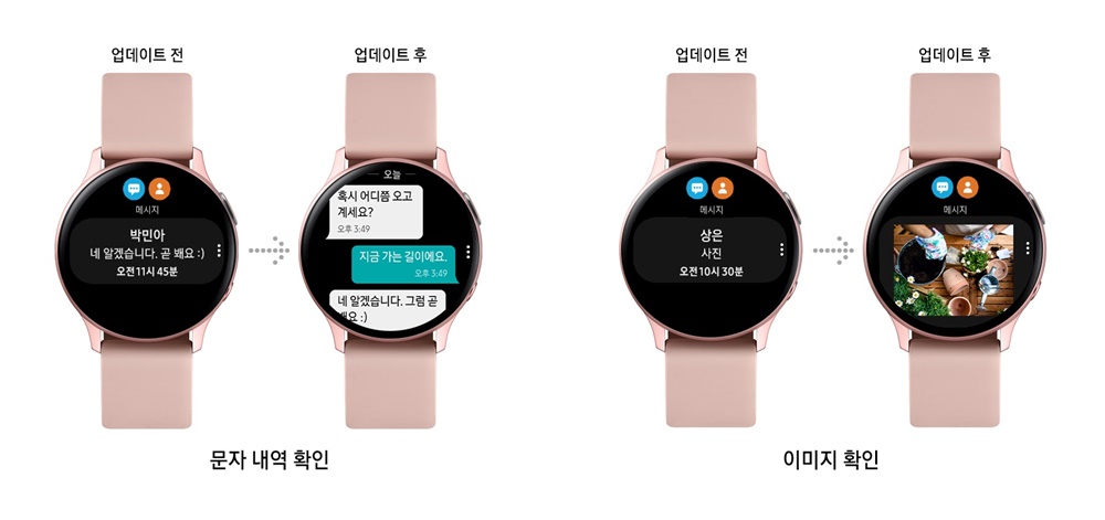 현재는 카톡, 문자의 이미지는 워치에서 볼 수가 없었는데 좋은 기능이 추가가 되네요.