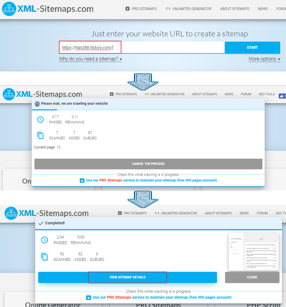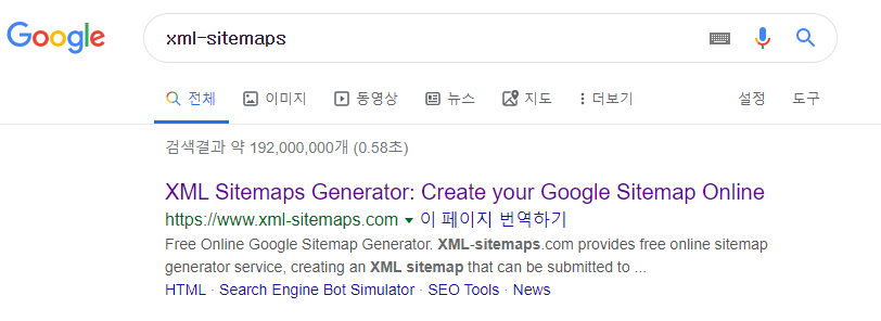 검색 사이트에서 "xml-sitemaps"라고 넣고 검색을 한 후 아래 사이트로 접속을 합니다.