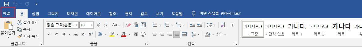 1. 메뉴 상단의 파일을 눌러서 좌측 하단 맨 아래의 옵션을 클릭합니다.
