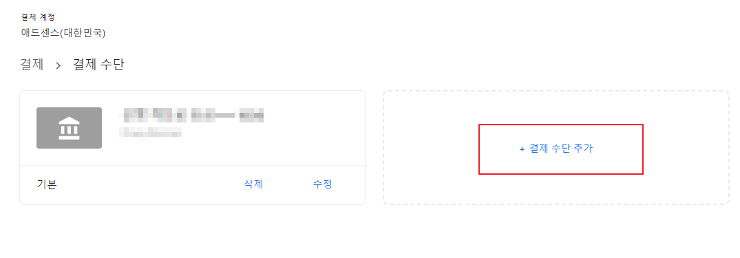 애드센스 접속 > 좌측 메뉴 > 지급 > 결제정보 > 지급받을 방법 > 결제수단 관리 > 결제수단 추가