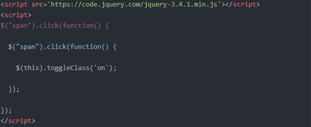 위 방법외에 toggleClass를 이용하여 바로 on/off도 가능합니다.