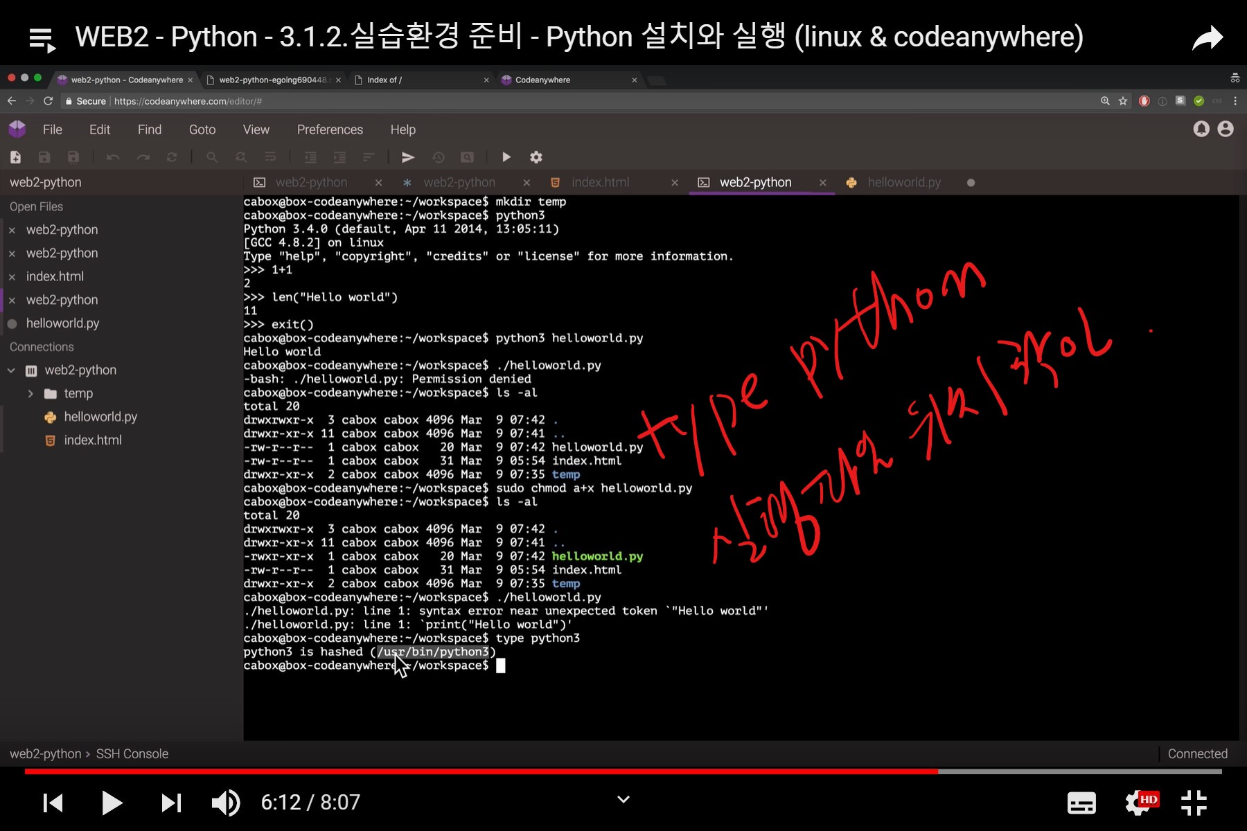 type python3을 실행하여 실행 경로를 확인합니다.