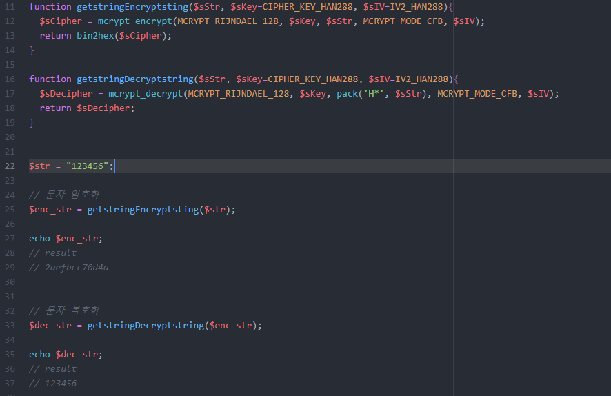 function getstringEncryptsting($sStr, $sKey=CIPHER_KEY_HAN288, $sIV=IV2_HAN288){