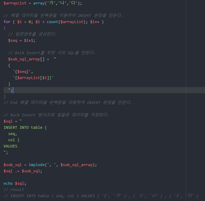 PHP 프로그램에서 BULK INSERT 문장을 만드는 방법