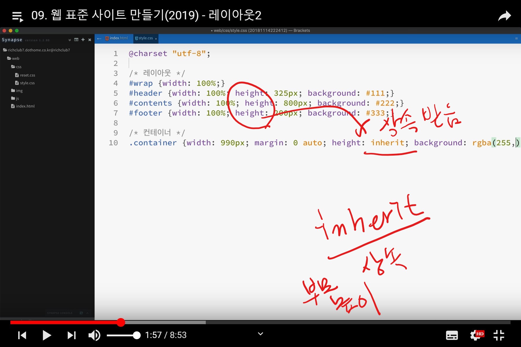 부모 노드와 동일한 값을 사용한다면 값을 지정할 필요없이 inherit를 사용하면 됩니다.