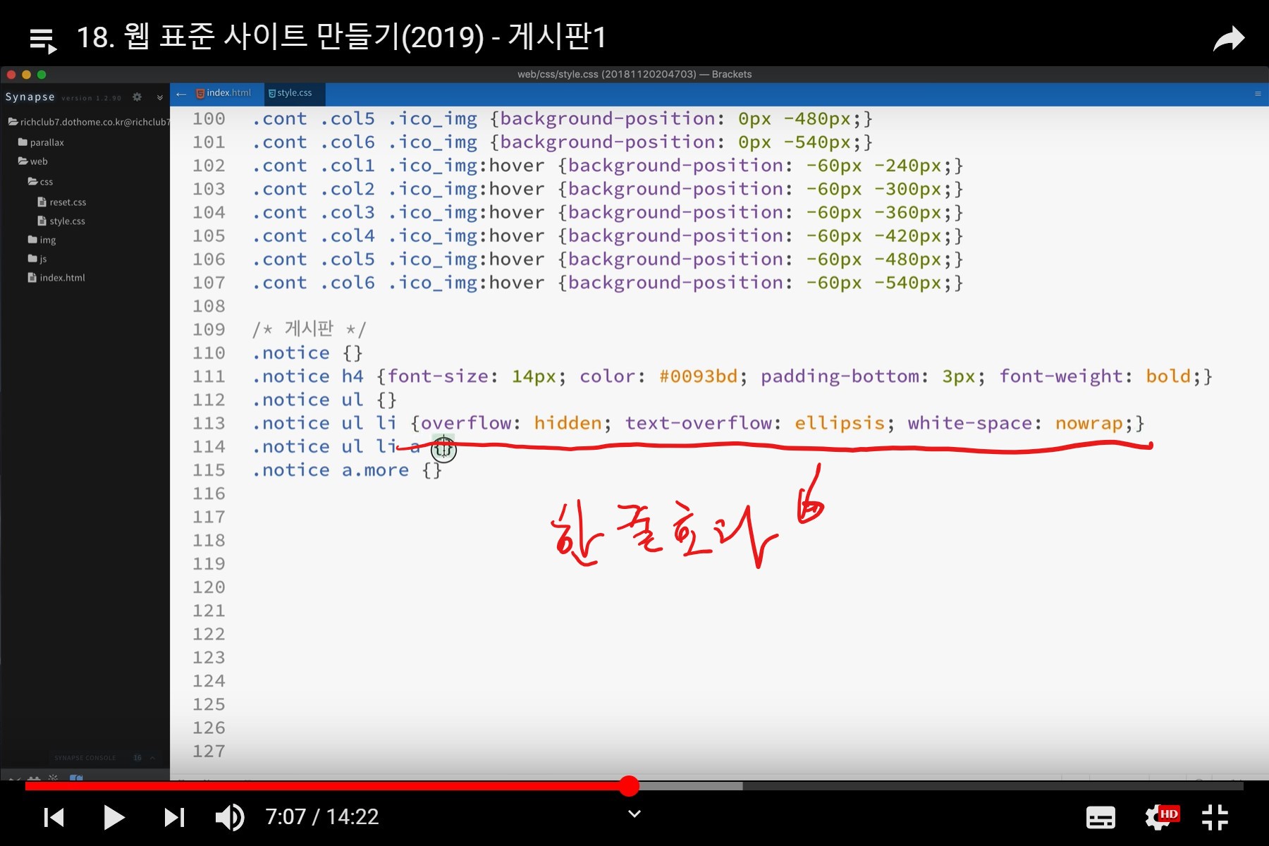 CSS3로 프로그램 처리 없이 한 줄 처리를 하는 방법입니다.