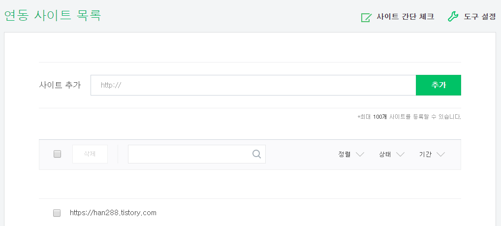 6. 인증이 완료가 되면 아래와 같이 티스토리 사이트가 추가 됩니다.