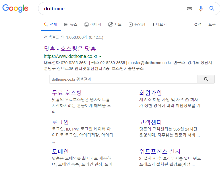 검색 사이트에서 "dothome" 으로 검색을 하여 사이트에 접속을 합니다.