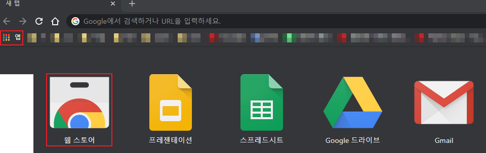 - 크롬에서 북마크바가 나오게 설정을 한 다음 북마크바 좌측의 앱 버튼을 클릭합니다.