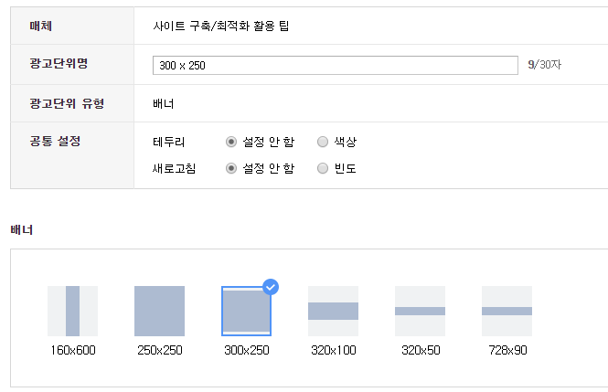 1. 300 x 250 애드핏 광고를 만듭니다.