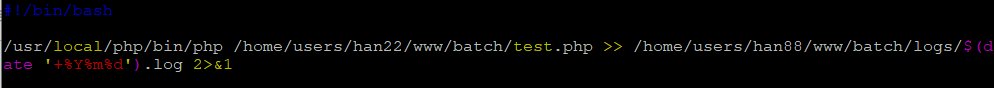 /[PHP설치경로]/bin/php /[전체경로]/[파일명].php >> [전체경로]/logs/$(date '+%Y%m%d')_[파일명].log 2>&1