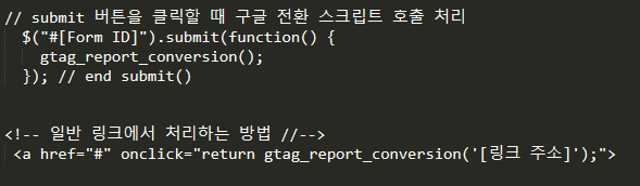 - javascript: gtag_report_conversion('[링크 주소]'); 로 링크 처리를 할 경우