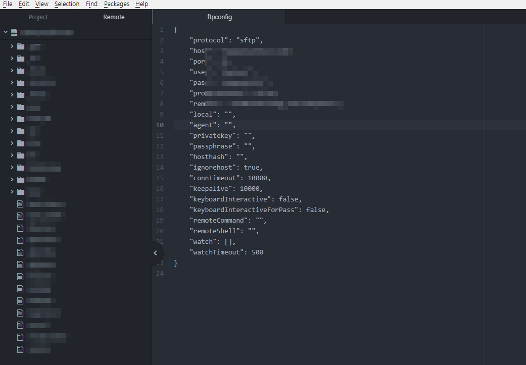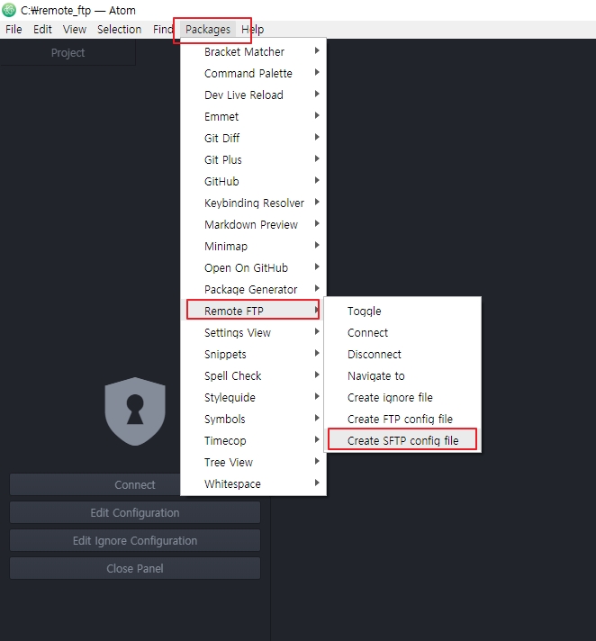 메뉴 → Packages → Remote FTP → Create SFTP config file 선택