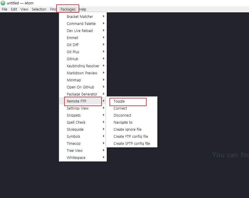메뉴 → Packages → Remote FTP → Toggle 선택