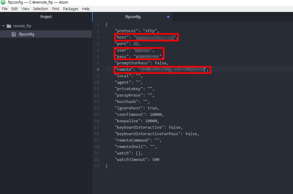 .ftpconfig 파일이 생성이 되며, 계정 및 디렉토리 경로를 입력