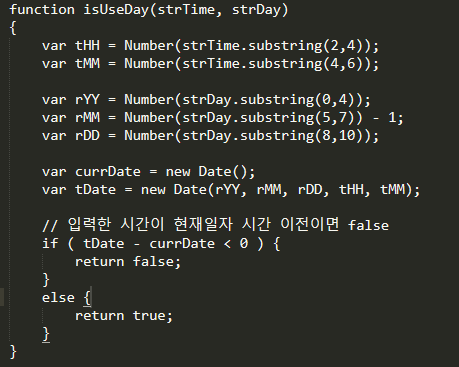 // 입력한 시간이 현재일자 시간 이전이면 false