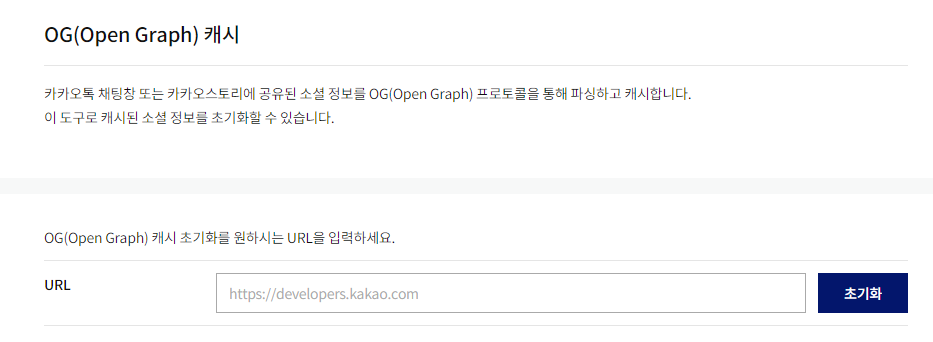 4. OG(Open Graph) 캐시 화면에서 본인의 사이트 주소를 입력 후 초기화를 합니다.