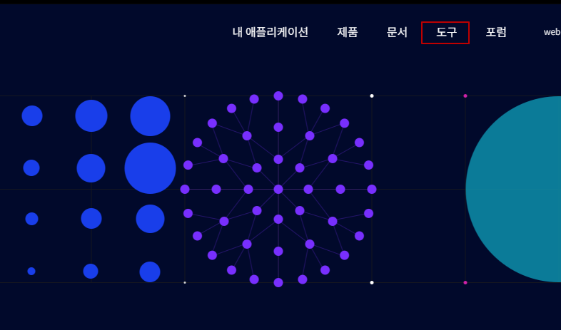 2. 카카오 개발자센터 사이트의 상단 메뉴의 도구를 클릭합니다.