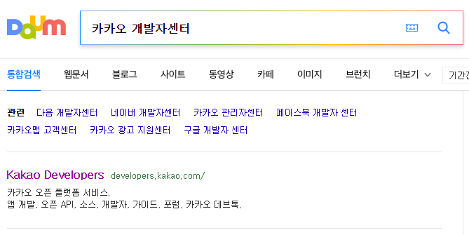 1. 다음 검색창에서 카카오 개발자센터로 검색을 합니다.
